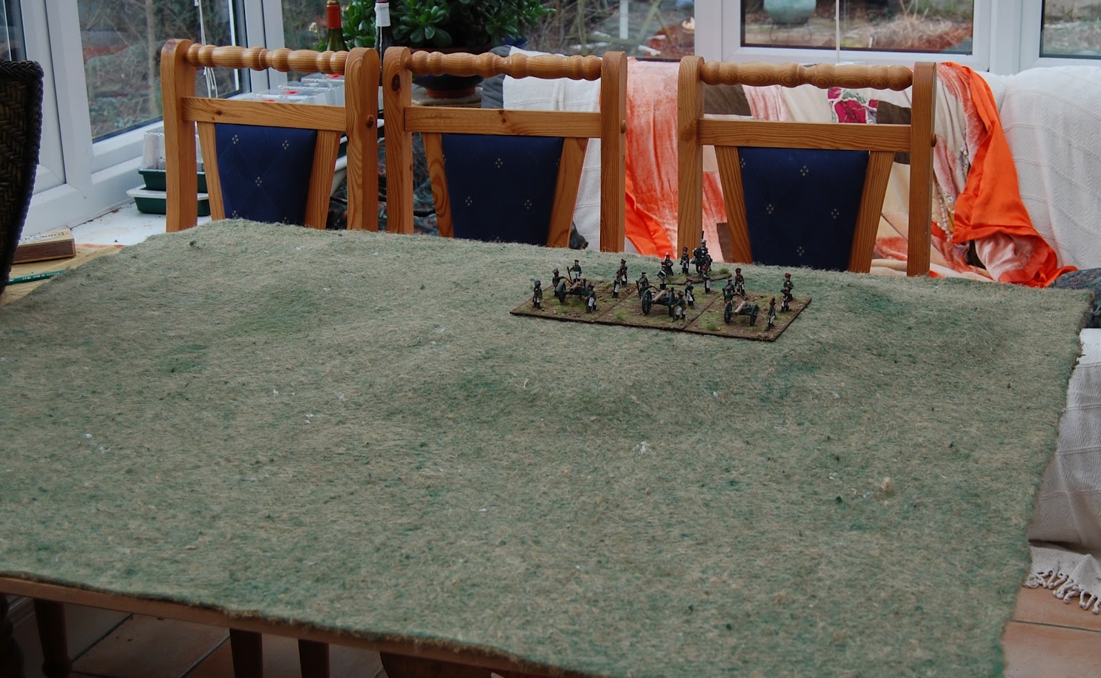 We've got a big game coming up end of April - so called Borodino light - or an excuse to get the toys out! To this end we needed a big hill on which to place the Russian batteries. Please see above for my first efforts at terrain construction with an old / new French guard chasseur battalion.